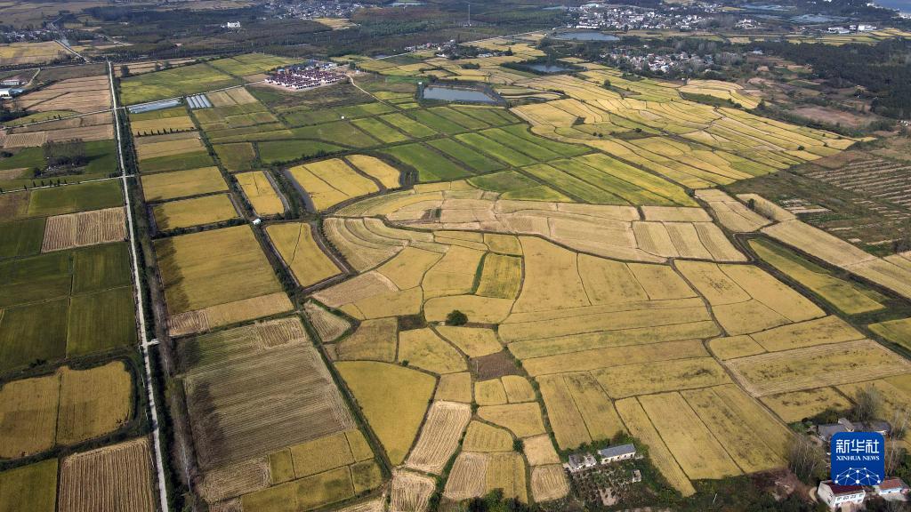 9月29日在安徽省合肥市肥東縣古城鎮拍攝的稻田(無(wú)人機照片)。