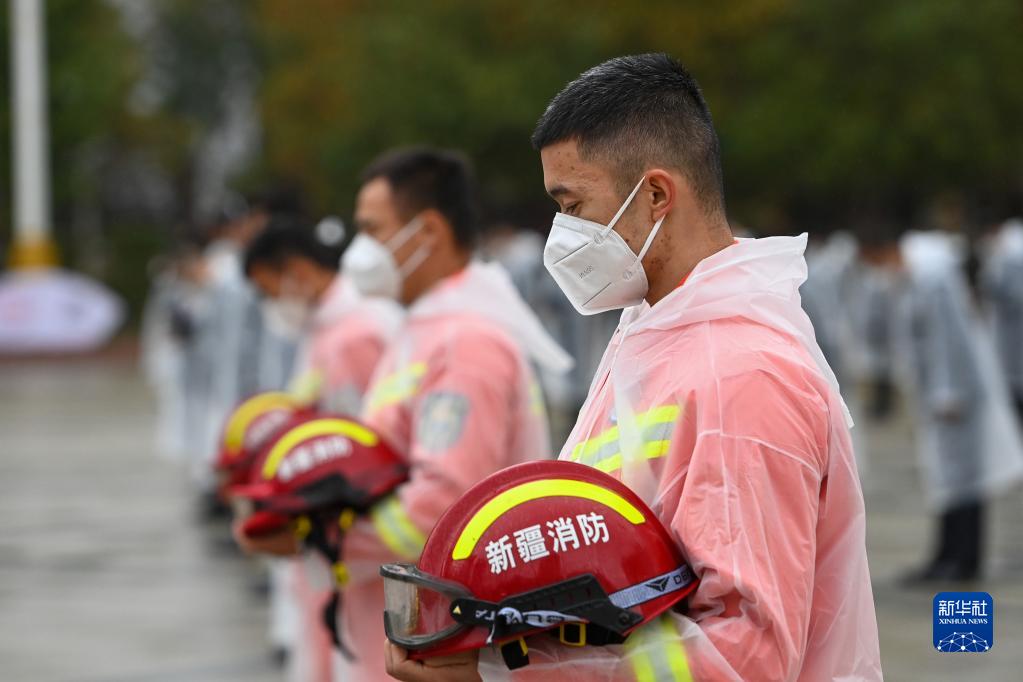 9月30日,在新疆烏魯木齊市人民廣場(chǎng),參加烈士紀念日活動(dòng)的代表默哀。