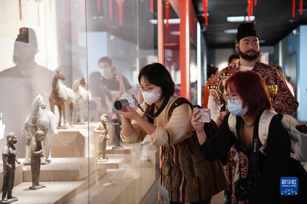 9月30日,觀(guān)眾在西安博物院參觀(guān)大唐金鄉縣主展。