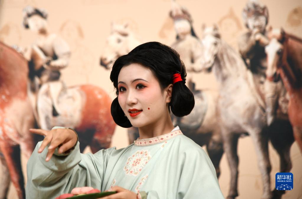 9月30日,身著(zhù)復原唐裝的演員在大唐金鄉縣主展開(kāi)展儀式上表演。