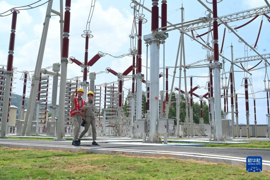 9月30日,閩粵電力聯(lián)網(wǎng)工程運維人員在巡視設備。