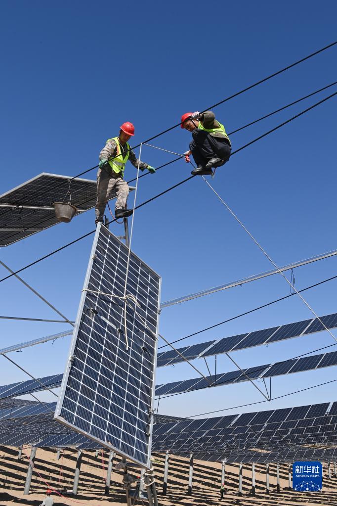 新華全媒+丨立體光伏治沙產(chǎn)業(yè)化項目繪就騰格里沙漠“生態(tài)綠”