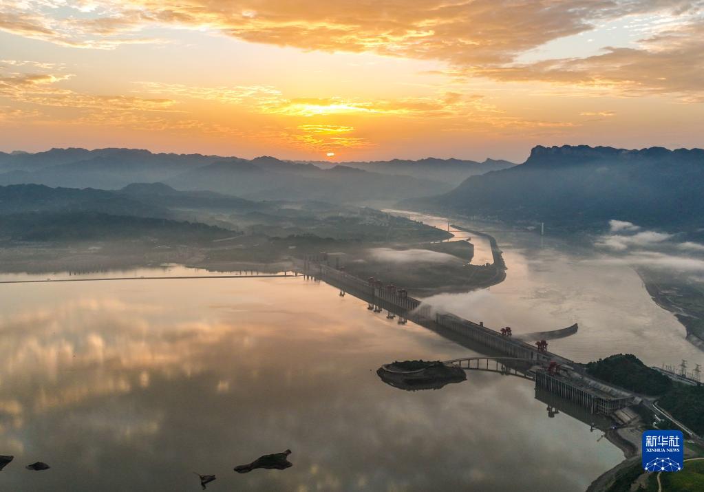 長(cháng)江三峽水利樞紐工程(無(wú)人機照片,2022年6月6日攝)。