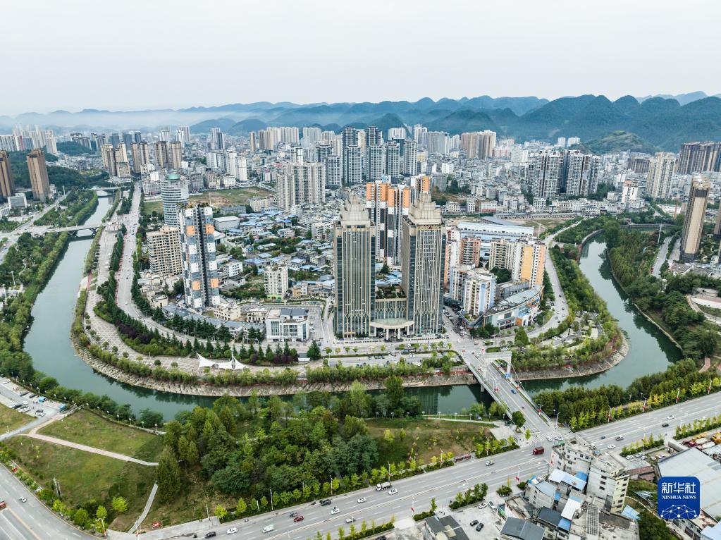 長(cháng)江支流清江穿過(guò)湖北省利川市主城區(無(wú)人機照片,2022年9月30日攝)。
