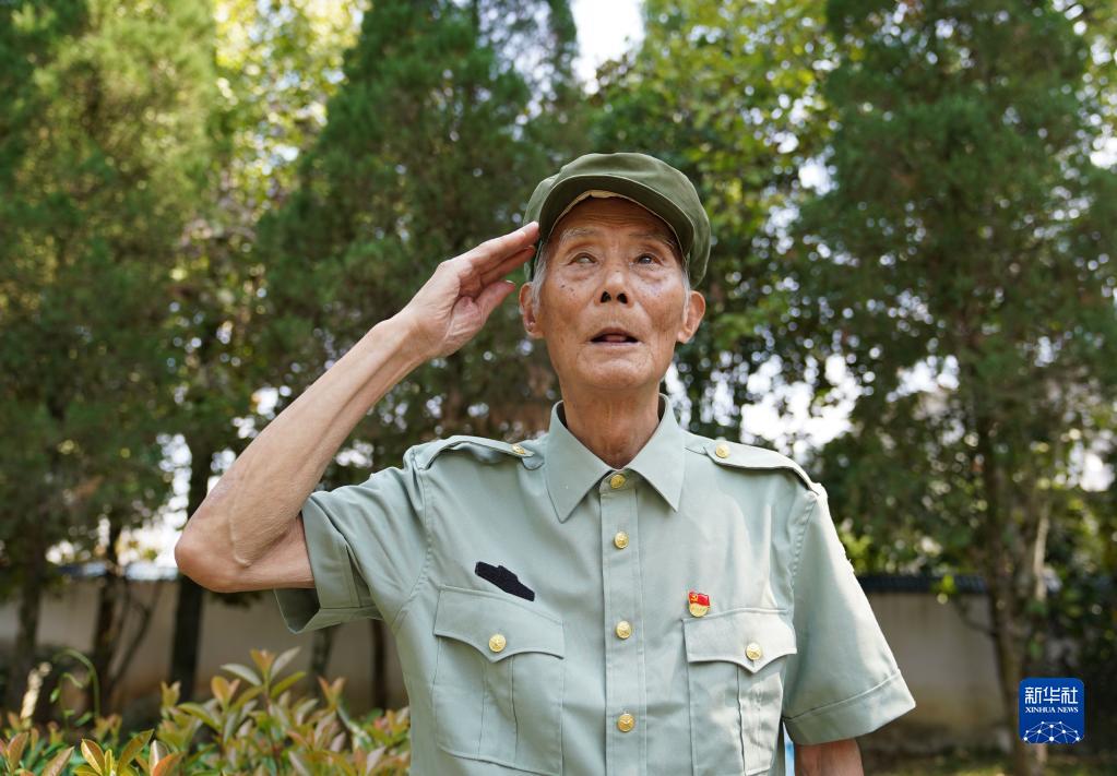 9月23日,程樟柱在方志敏烈士塑像前向先烈行軍禮。