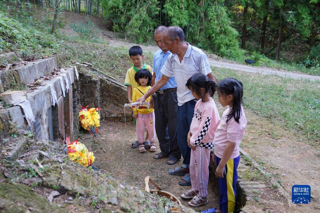在江西省贛州市于都縣寬田鄉石含村,有一座紅軍烈士墓,埋葬著(zhù)鄧毅剛烈士的遺骨。石含村的謝家祖孫六代從1932年起守護烈士墓,至今已90年。如今,七十多歲的謝南京還是堅持帶著(zhù)家人經(jīng)常來(lái)到鄧毅剛烈士墓前,為這位“鄧爺爺”掃墓。