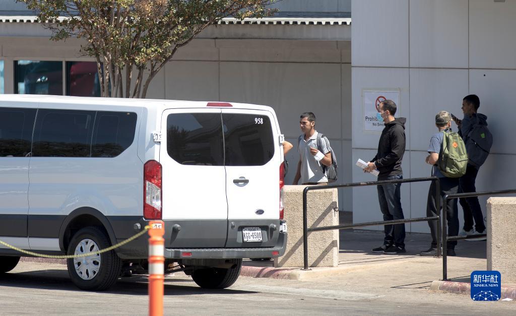 9月30日,在美國得克薩斯州圣安東尼奧,移民排隊登上轉送車(chē)輛。