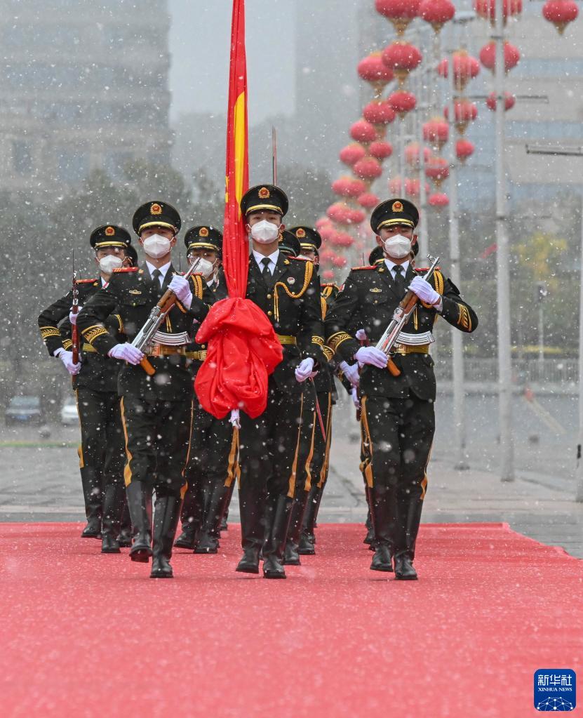 10月1日在烏魯木齊新疆國際會(huì )展中心拍攝的國慶升旗儀式。