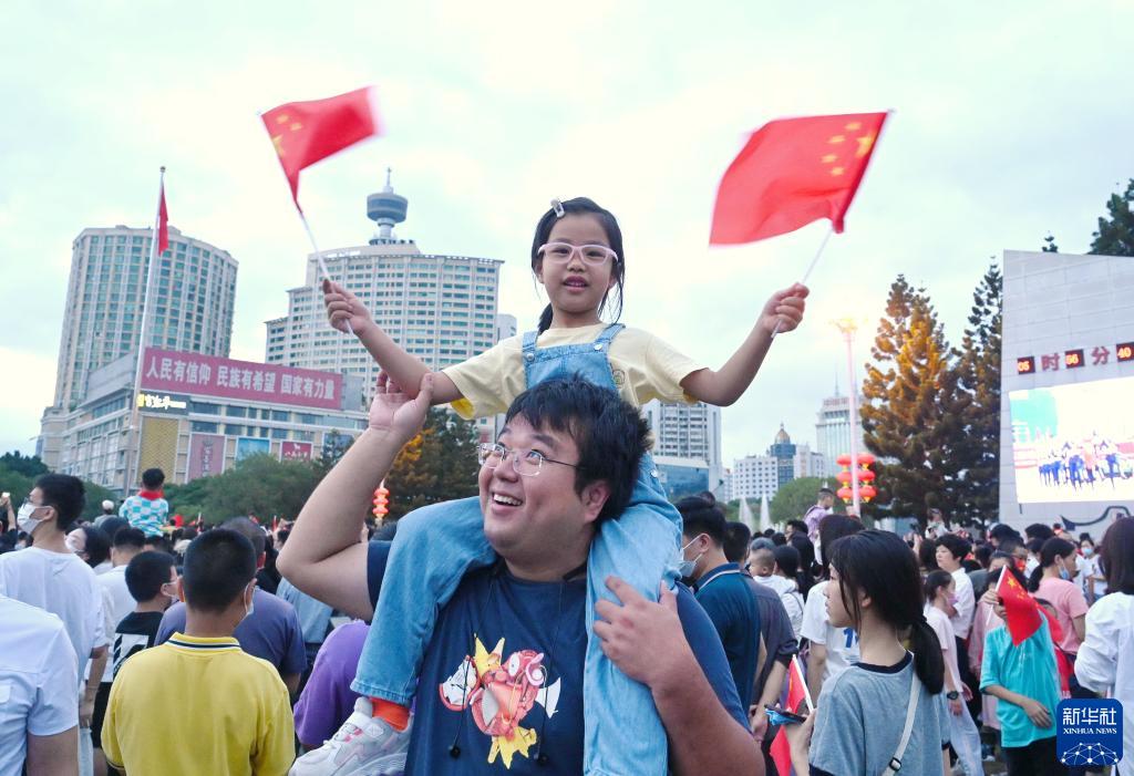 10月1日,人們在福州市五一廣場(chǎng)參加升國旗儀式。