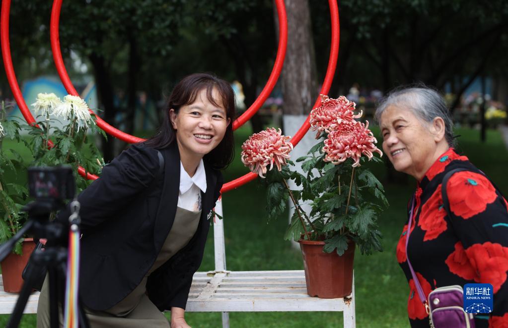 10月1日,游客在昆明市大觀(guān)公園舉行的第28屆金秋菊花展上賞菊。