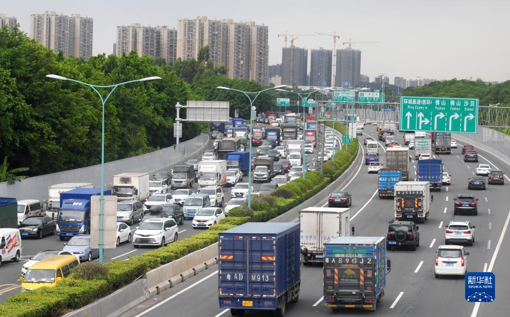 10月1日,廣州環(huán)城高速公路上車(chē)流密集。