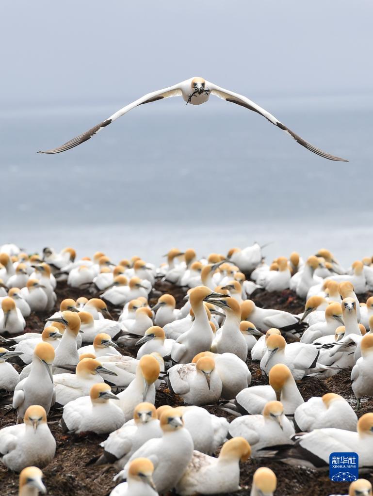 這是9月25日在新西蘭北島東海岸拐子角塘鵝保護區拍攝的塘鵝。