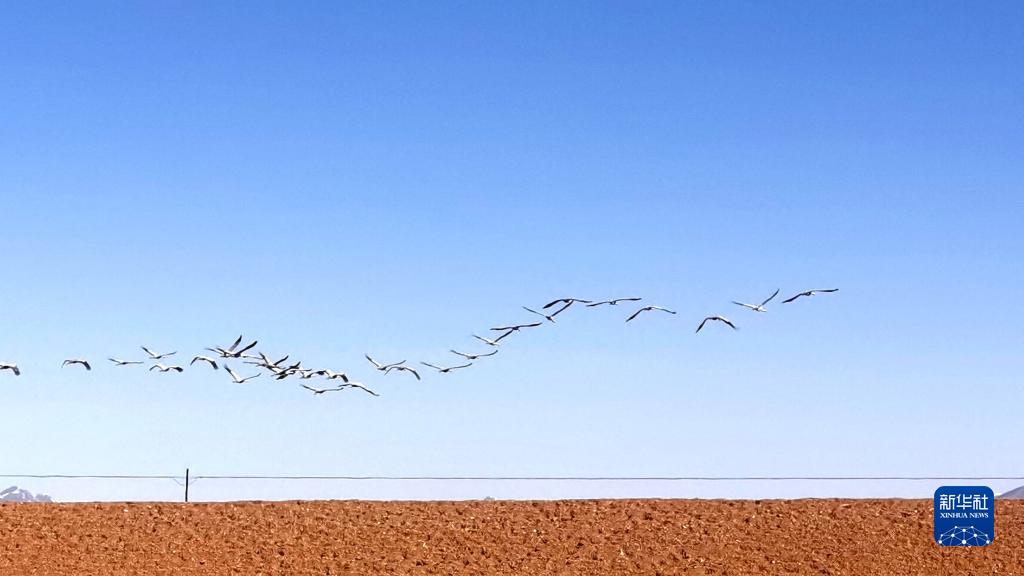 這是在位于青海省果洛藏族自治州瑪多縣的三江源國家公園黃河源園區內拍攝的一群蓑羽鶴(3月13日攝)。