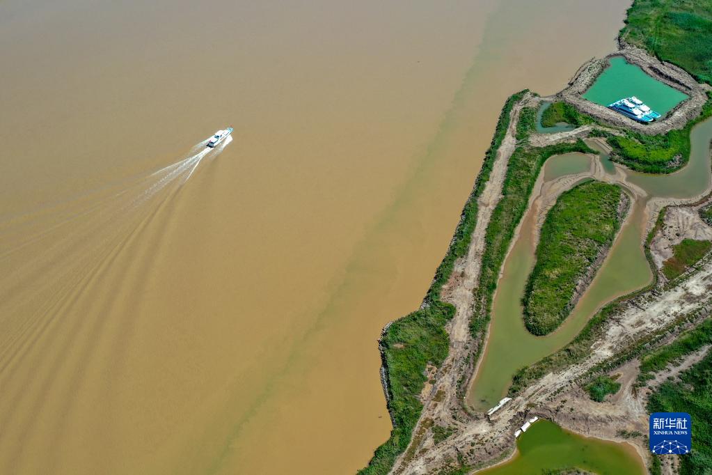 這是在山東黃河三角洲國家級自然保護區拍攝的黃河河道(8月17日攝,無(wú)人機照片)。