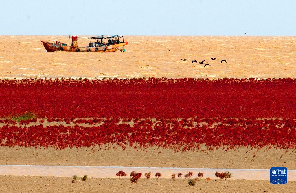 這是在山東黃河三角洲國家級自然保護區拍攝的通過(guò)統一調度黃河水得以再生的濕地(9月18日攝)。