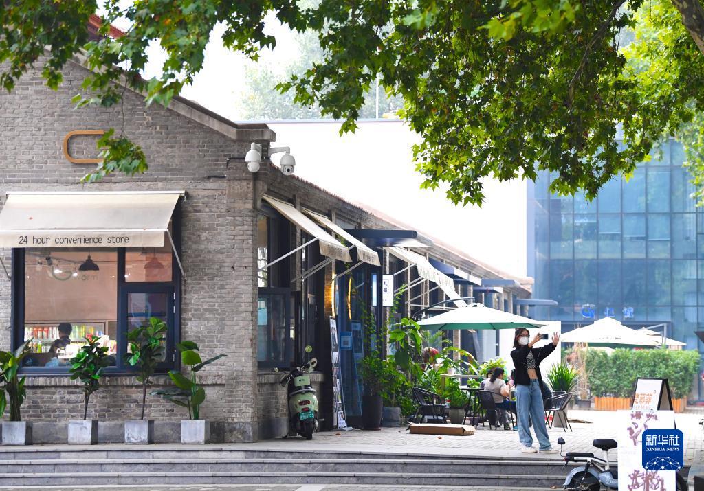 10月1日,市民在河南省鄭州市芝麻街1958雙創(chuàng )園里游玩。