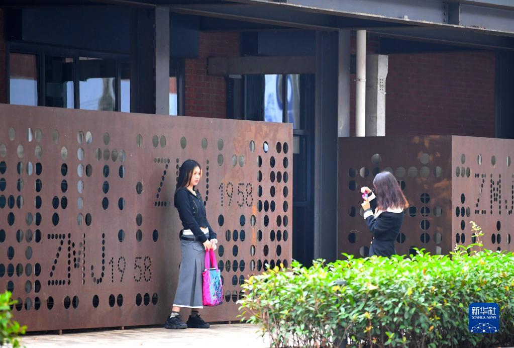 10月1日,市民在河南省鄭州市芝麻街1958雙創(chuàng )園里拍照游玩。