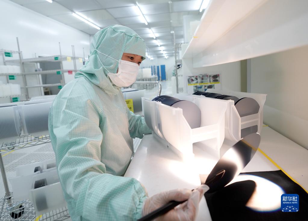 9月30日,山東省德州市天衢新區一家半導體材料企業(yè),員工在目檢硅片。