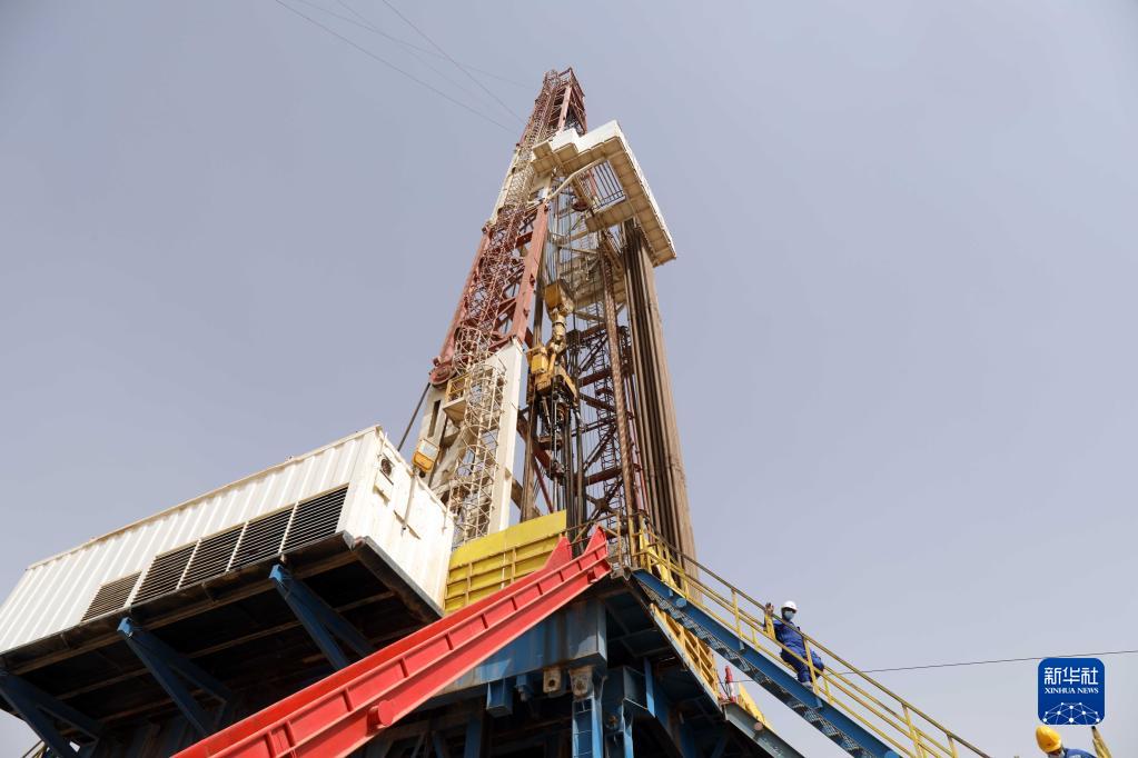 這是9月25日拍攝的位于伊拉克米桑省哈法亞油田內的一個(gè)鉆井平臺。新華社發(fā)(哈利勒·達伍德攝)