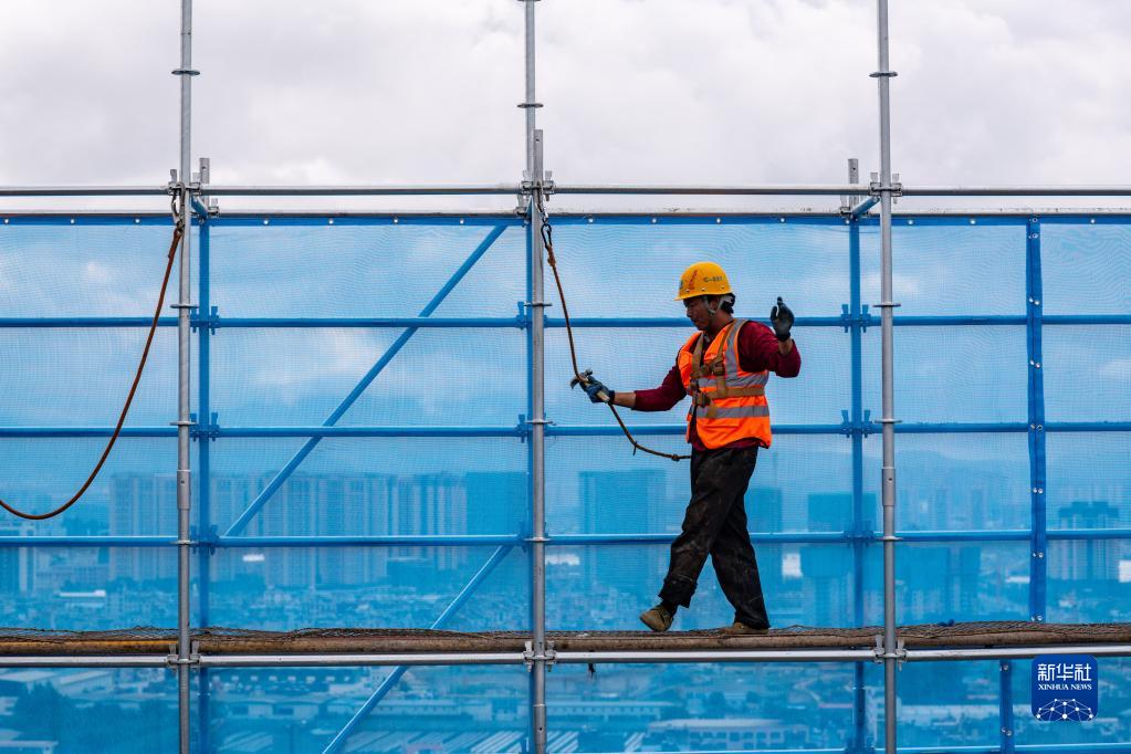 10月2日,中建七局西南公司工人李忠文在昆明斗南花卉小鎮花卉產(chǎn)業(yè)綜合配套服務(wù)區項目建設工地施工。