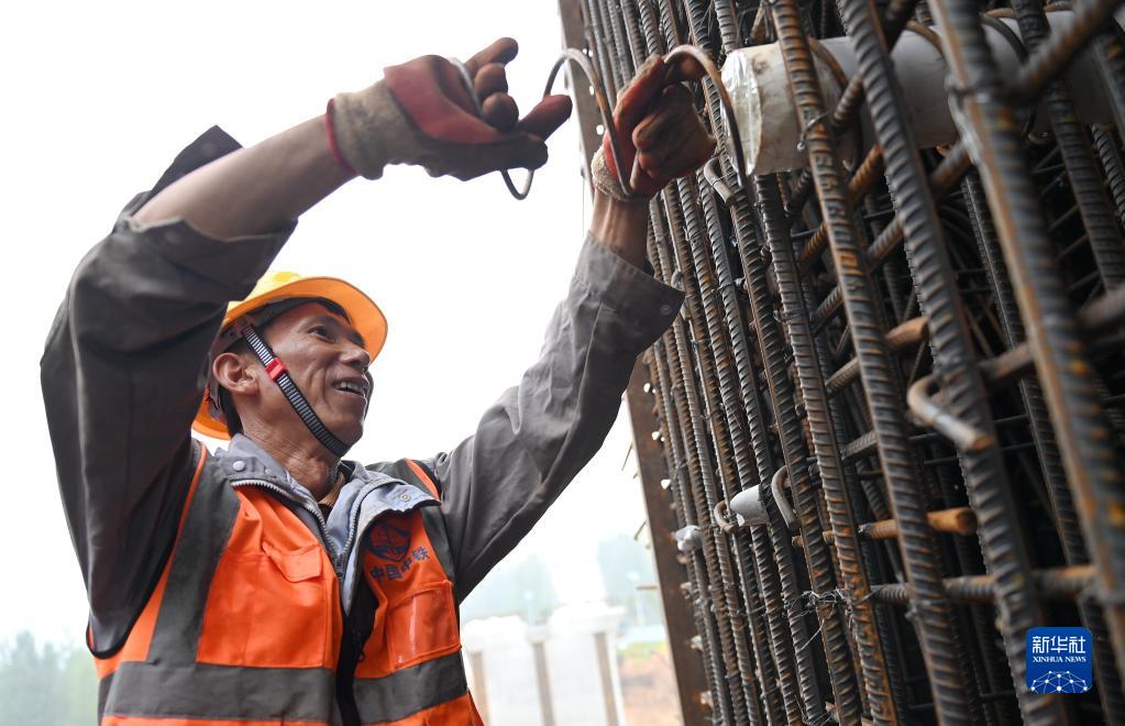10月2日,中鐵上海工程局施工人員在位于陜西省西安市的西十高鐵跨浐河連續梁0號塊作業(yè)。