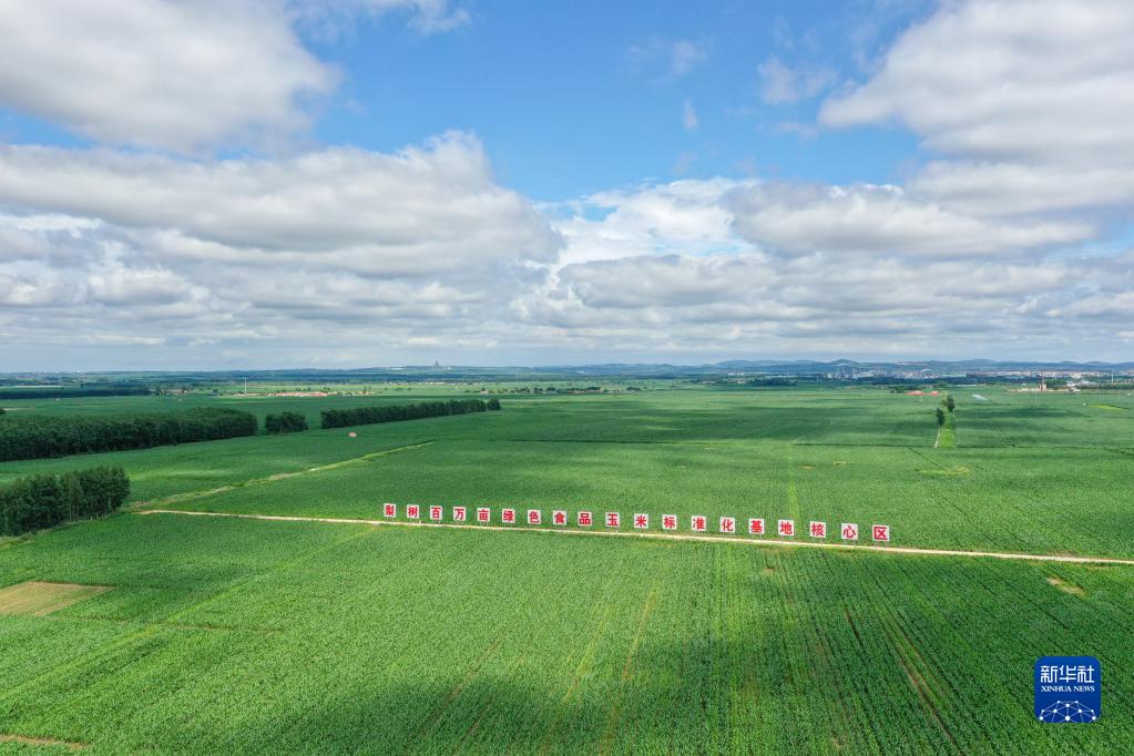 這是吉林省梨樹(shù)縣國家百萬(wàn)畝綠色食品原料(玉米)標準化生產(chǎn)基地核心示范區(無(wú)人機照片,2022年7月7日攝)。