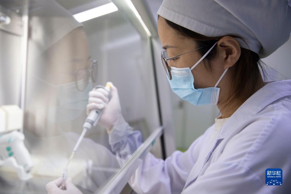 2022年6月20日,在位于中國(黑龍江)自由貿易試驗區哈爾濱片區的黑龍江天晴干細胞股份有限公司檢驗室內,工作人員對樣品進(jìn)行檢驗。