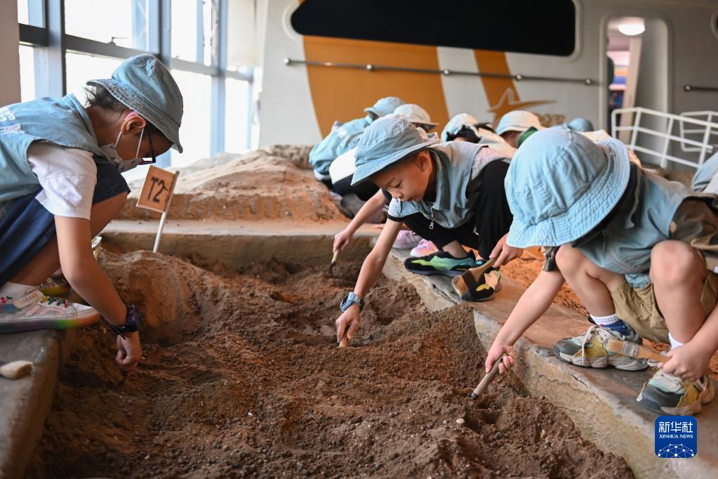 10月2日,小朋友在杭州青少年發(fā)展中心“Do都城”體驗“考古發(fā)掘”。