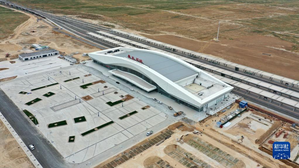 這是銀蘭高鐵甘肅段秦王川站(10月2日攝,無(wú)人機照片)。