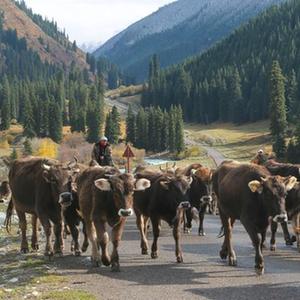新疆昭蘇:褐牛轉場(chǎng)出天山