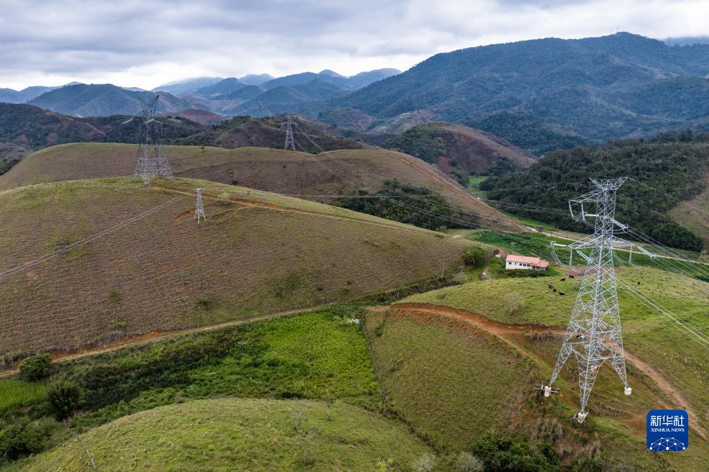 這是9月30日在巴西里約熱內盧拍攝的美麗山特高壓輸電二期項目輸電線(xiàn)路(無(wú)人機照片)。新華社記者 王天聰 攝