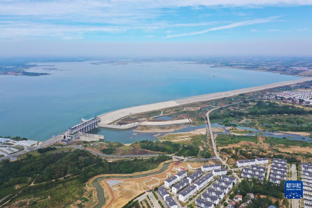 這是9月28日在河南省信陽(yáng)市拍攝的出山店水庫工程(無(wú)人機照片)。