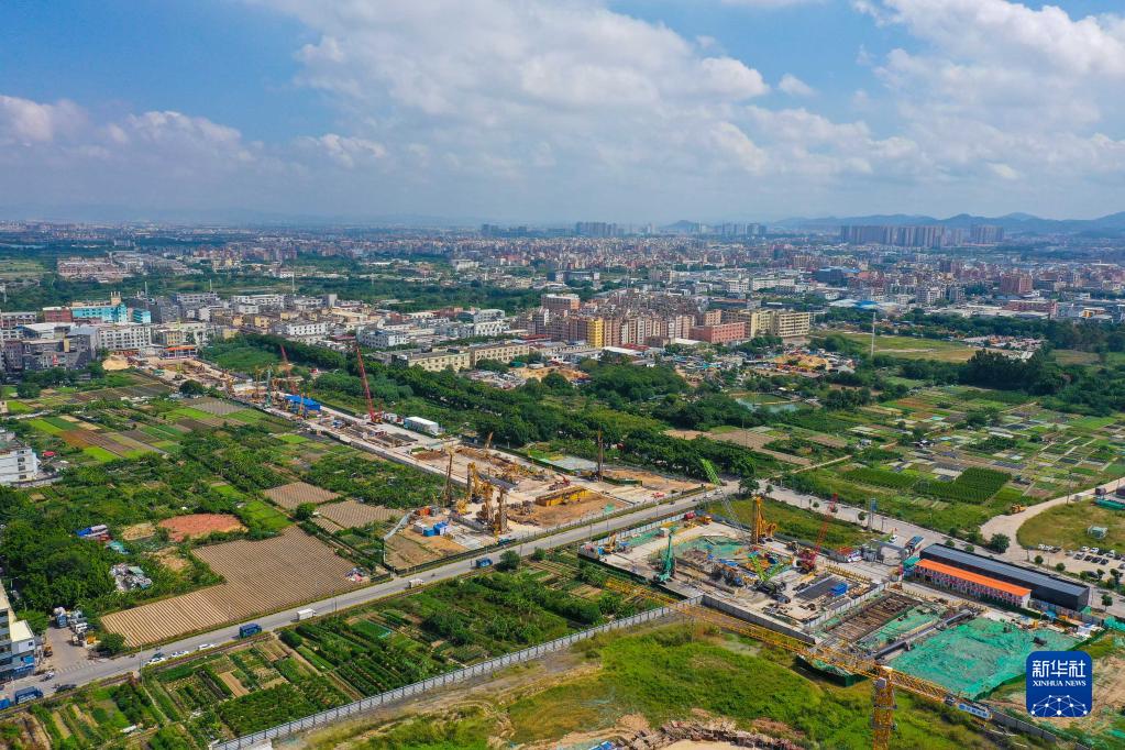 這是廣花城際鐵路白云城市中心站建設工地(10月3日攝,無(wú)人機照片)。