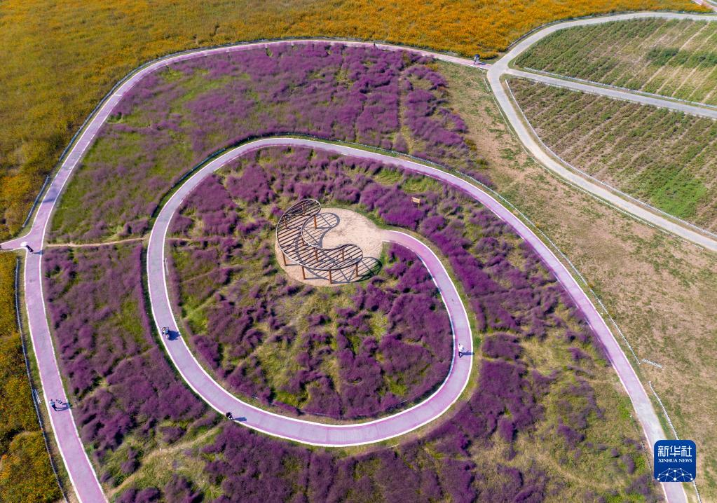 10月3日,游客在江蘇省淮安市百花園游玩(無(wú)人機照片)。
