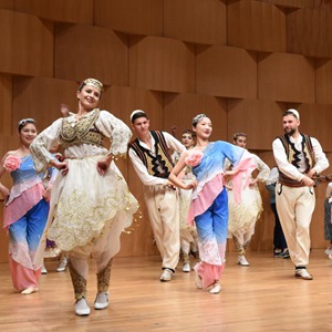 9月29日,在阿爾巴尼亞地拉那,演員在“藝相異,心相交”中阿民族藝術(shù)交流上表演。
