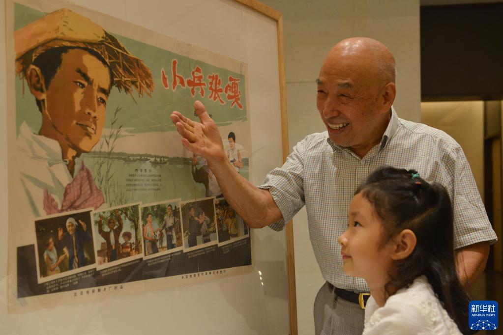 10月3日,82歲的張子誠在河北省石家莊市新華區為孩子講述紅色電影海報背后的故事。張子誠多年來(lái)共收藏電影海報六千多張,多次舉辦主題展覽。