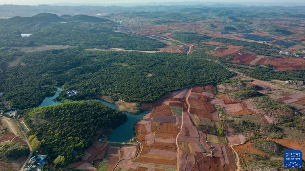 俯瞰位于云南省曲靖市沾益區的珠江源(無(wú)人機照片,2022年4月12日攝)。