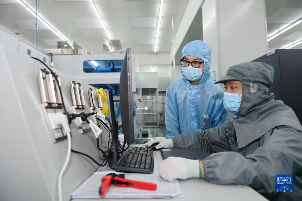 科研人員在秦創(chuàng )原光伏創(chuàng )新中心——隆基中央研究院中試線(xiàn)上工作(2022年9月23日攝)。新華社記者 李一博 攝