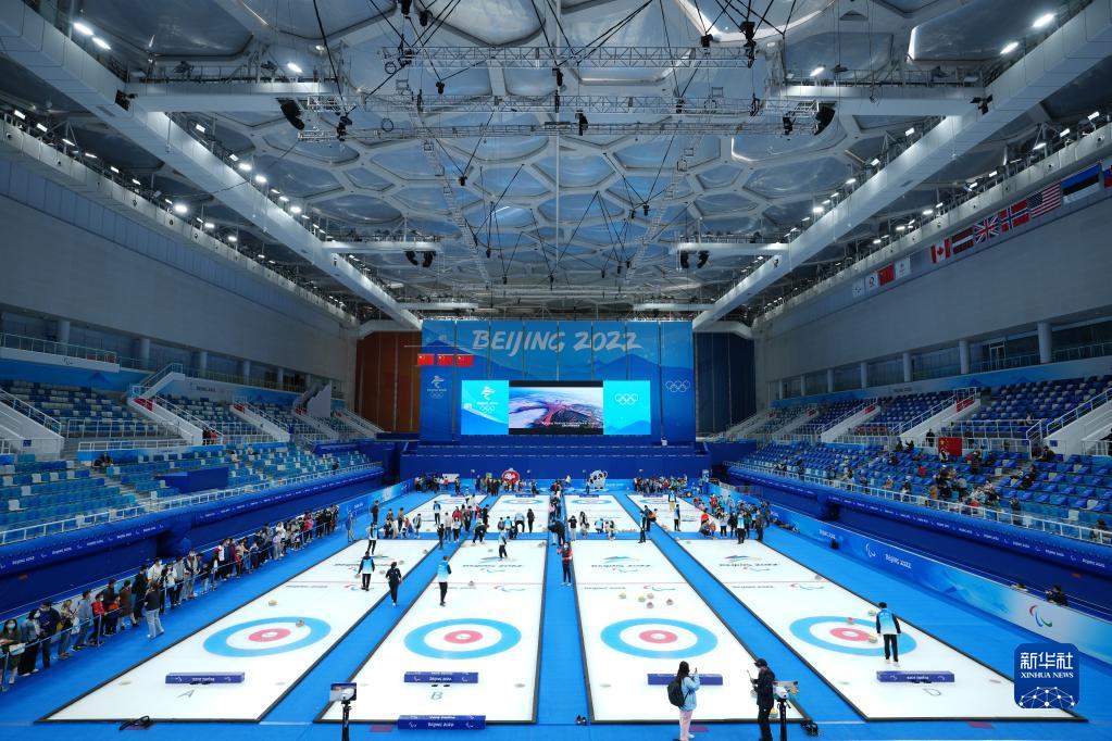 2022年4月16日,觀(guān)眾在“冰立方”內參觀(guān)體驗?!氨⒎健笔潜本┒瑠W會(huì )全部12個(gè)競賽場(chǎng)館中率先開(kāi)放公眾體驗的場(chǎng)館。 新華社記者 鞠煥宗 攝