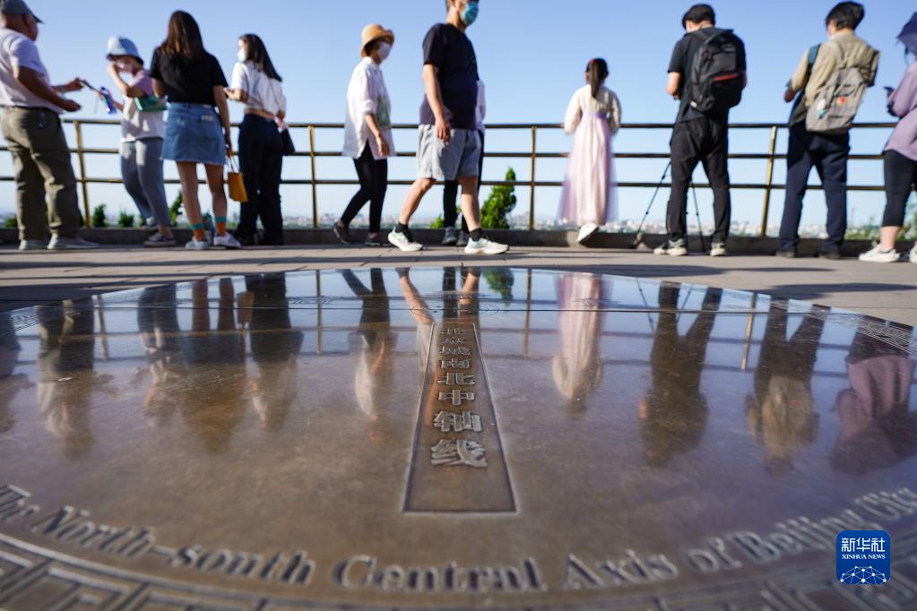 2022年9月18日,游客在北京景山上觀(guān)賞中軸線(xiàn)景觀(guān)。 新華社記者 陳鐘昊 攝