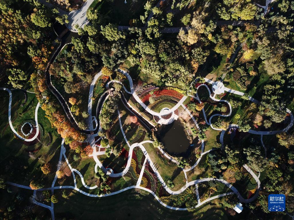 這是10月4日拍攝的太陽(yáng)島風(fēng)景區的花卉園(無(wú)人機照片)。