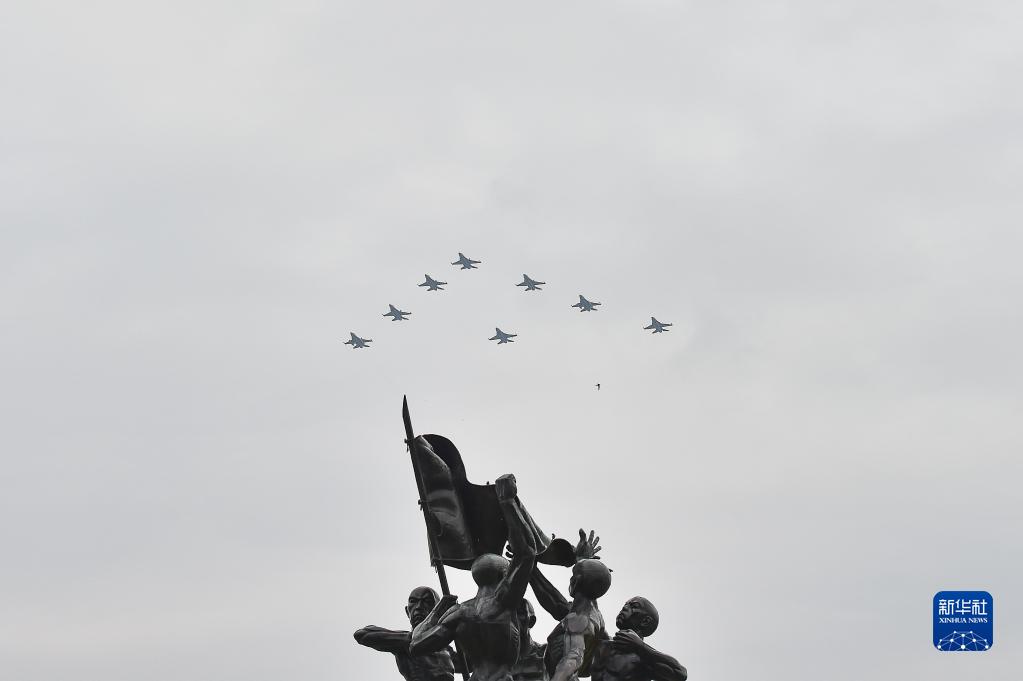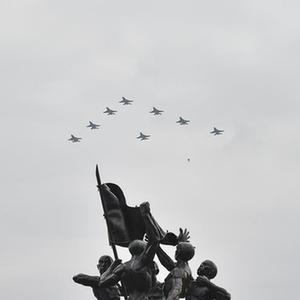 10月5日,在印度尼西亞雅加達,飛機在國民軍建軍77周年慶?;顒?dòng)上表演。