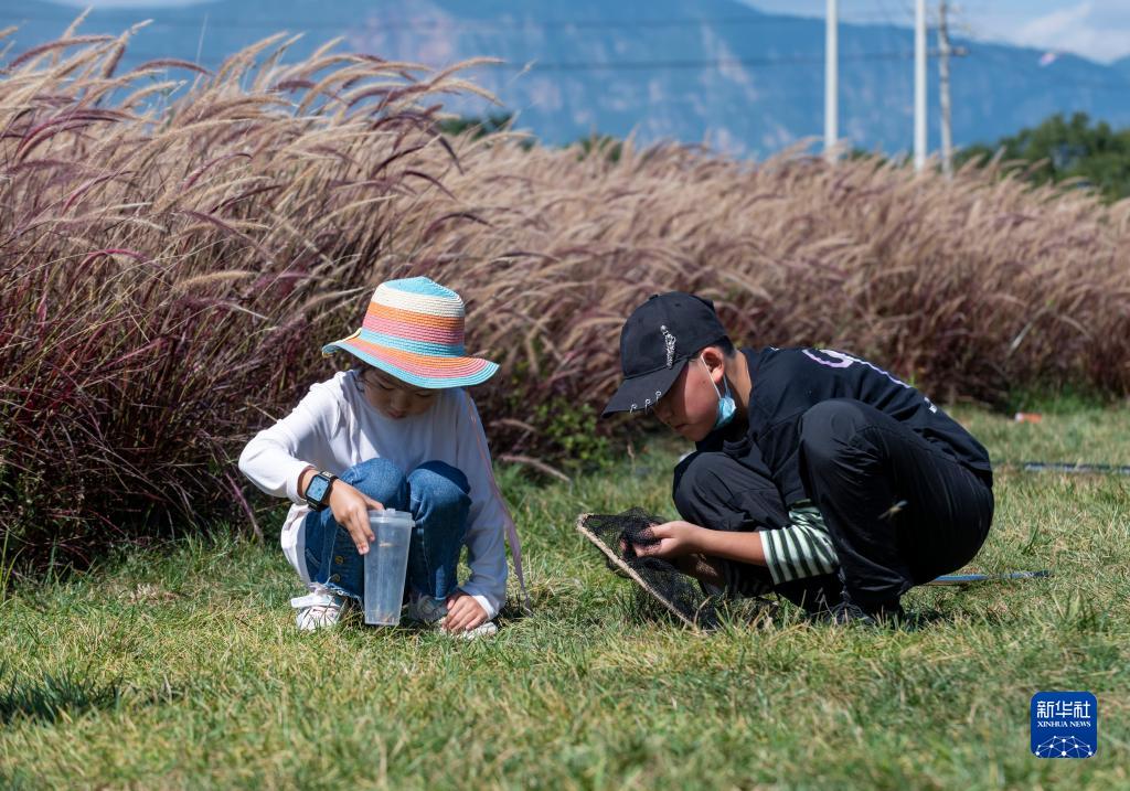 10月5日,兩名小朋友在云南昆明寶豐半島濕地公園玩耍。