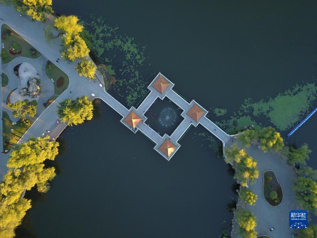 十月初的吉林長(cháng)春秋意漸濃,南湖公園內湖心島與四亭橋遙相輝映,景色優(yōu)美。