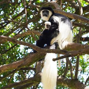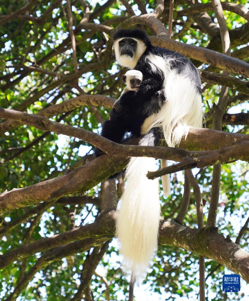 這是10月5日在肯尼亞納紐基拍攝的東非黑白疣猴。