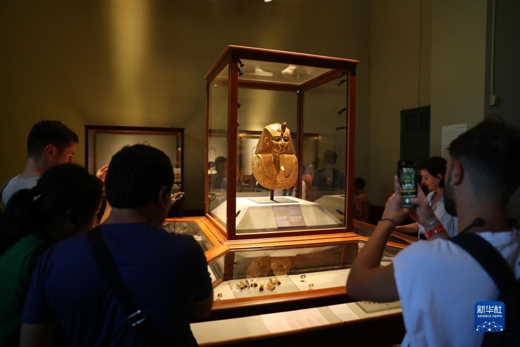 10月5日,在位于埃及開(kāi)羅的埃及博物館,游客拍攝法老蘇瑟奈斯一世的金面具。