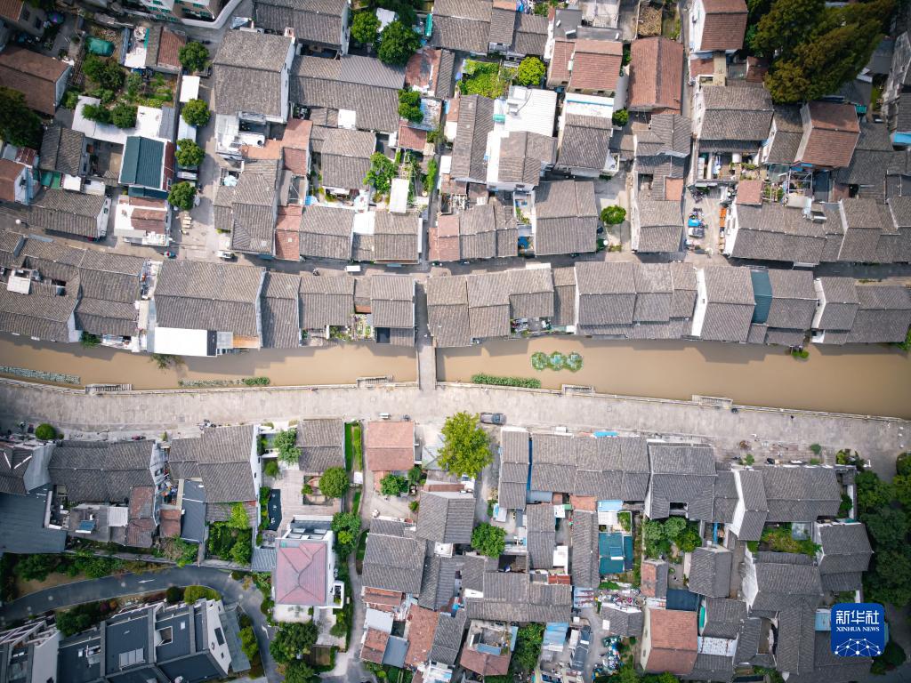 從杭州西興老街流淌而過(guò)的浙東運河(2022年9月27日攝,無(wú)人機照片)。