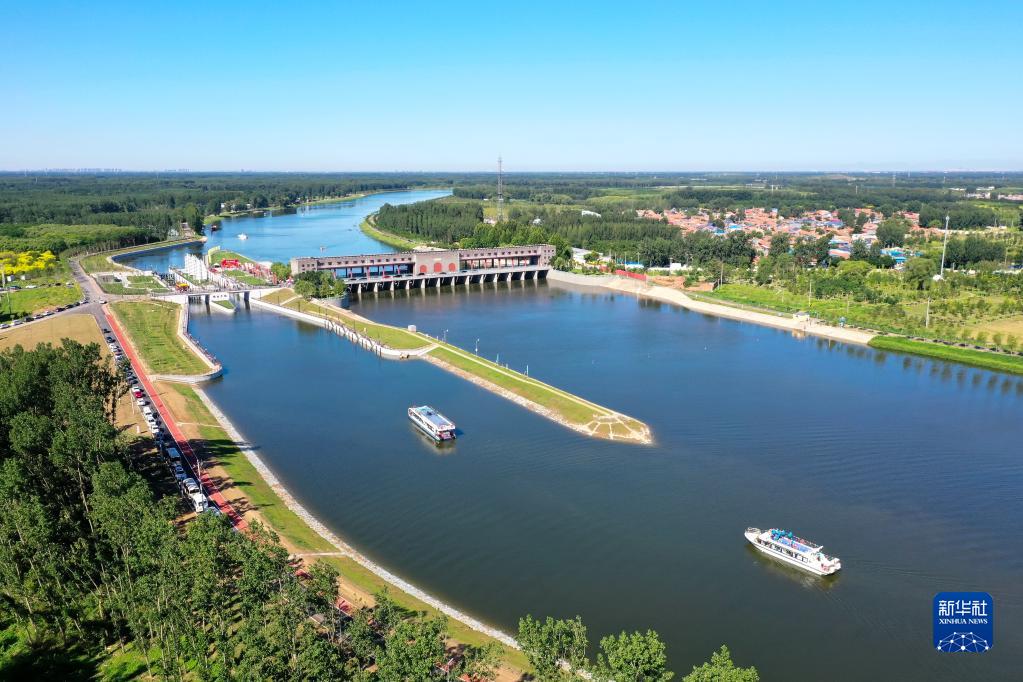 游船駛過(guò)大運河京冀交界處楊洼閘(2022年6月24日攝)。