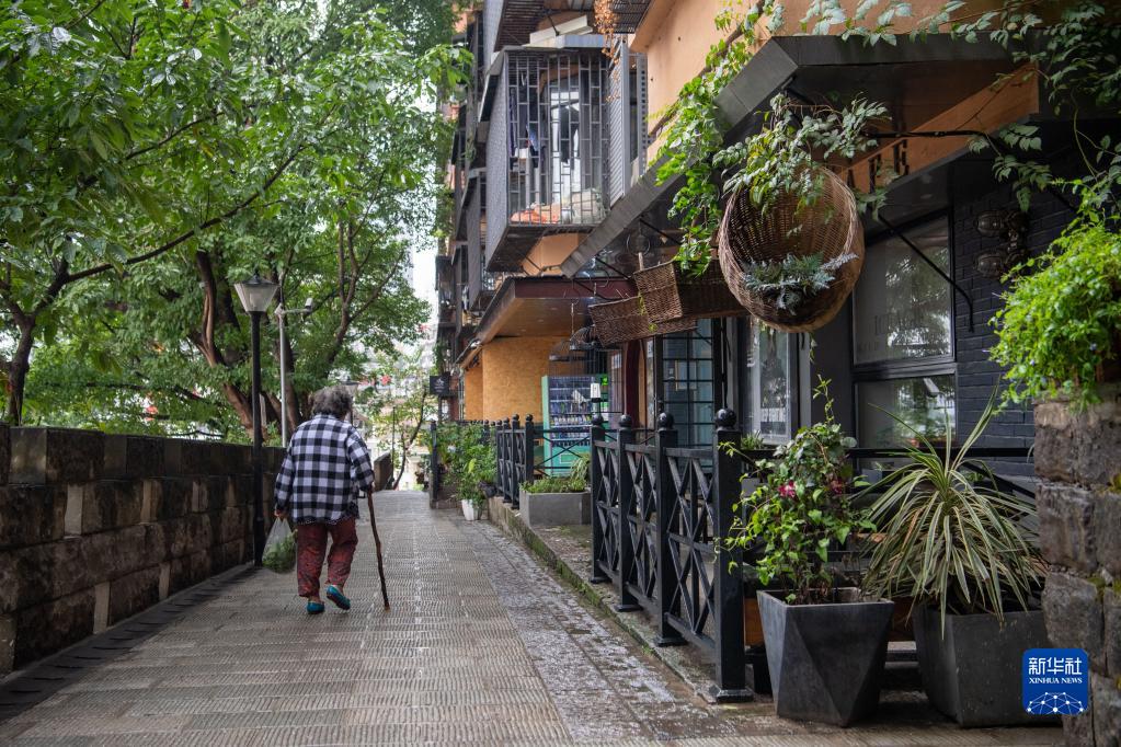 一名市民經(jīng)過(guò)重慶市渝中區戴家巷。該處老社區經(jīng)過(guò)修繕改造,成為深受年輕人和游客喜愛(ài)的臨江“咖啡街”(2022年9月24日攝)。