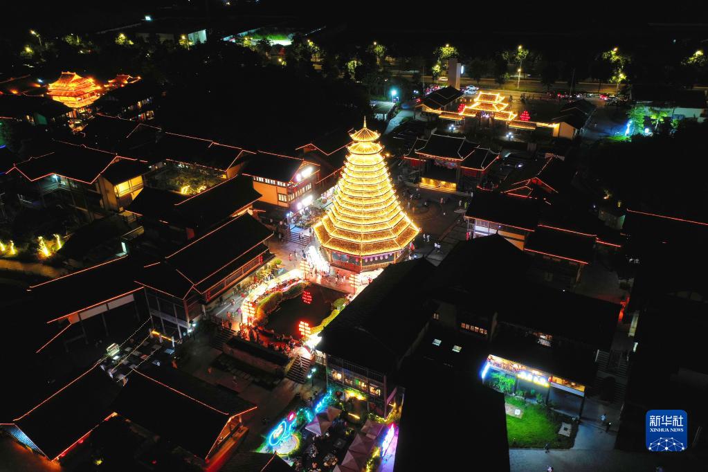 10月3日拍攝的廣西南寧相思小鎮夜景(無(wú)人機照片)。